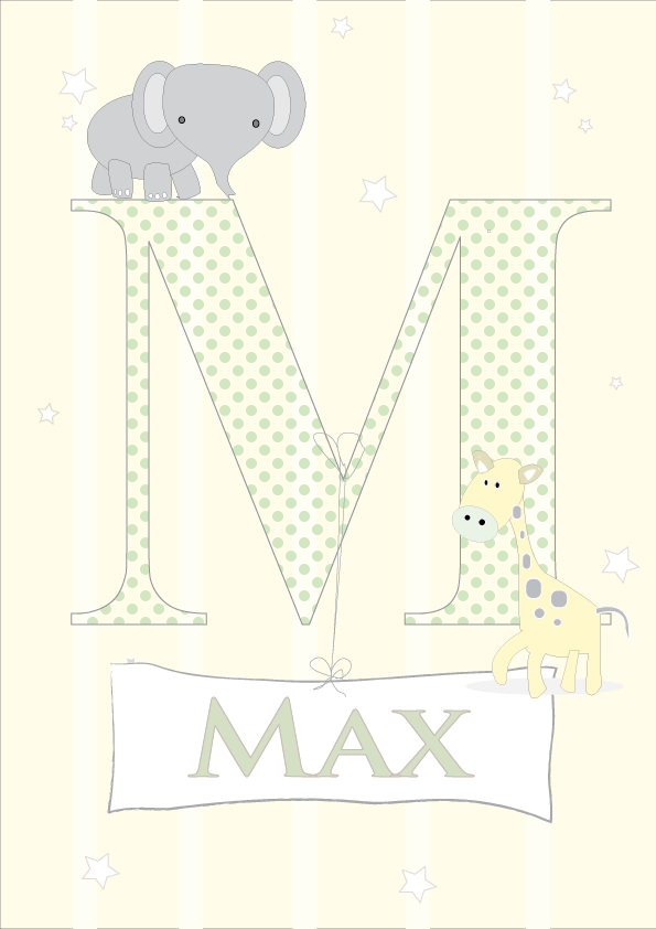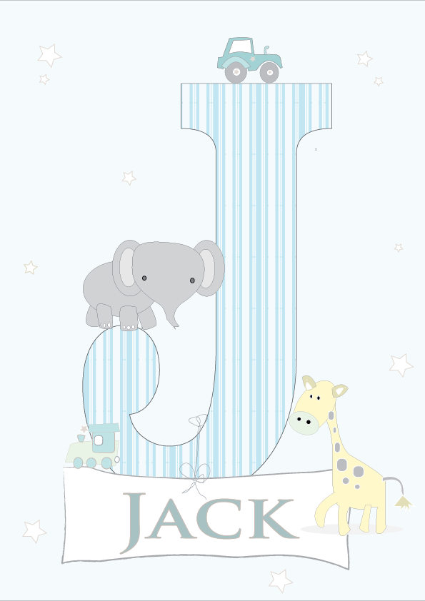 A personalised print perfect to celebrate the birth, Christening or birthday of any child. A large initial letter surrounded by cute little images show of the name of the special little boy or girl. Simply personalise at the checkout with your name of choice.