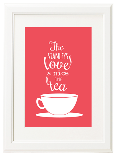 This cute print has a slightly retro feel and features the name or names of your chosen tea-lover!