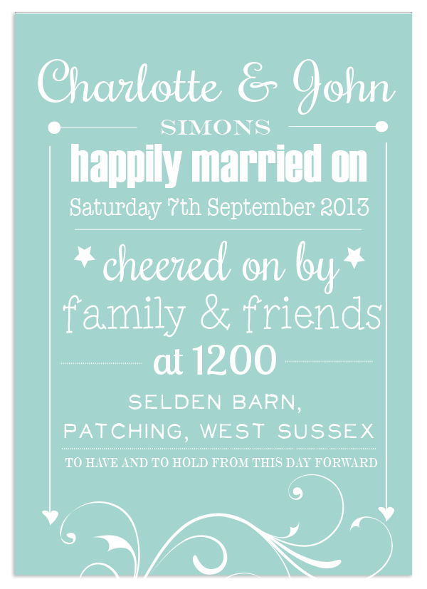 This funky typographical print can be personalised with the names , date, time and location of the special day for the happy couple. Currently available in duck egg blue. Makes a perfect wedding gift. Finished dimensions: