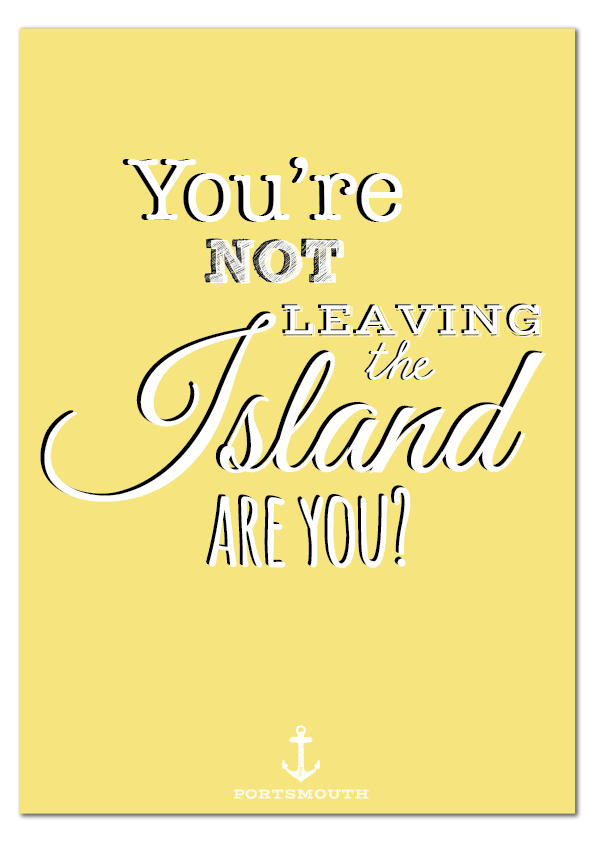 You understand this if you live on an Island...nobody wants to leave, and we have made a print about it! Available for Portsmouth, Hayling Island and the Isle of Wight.